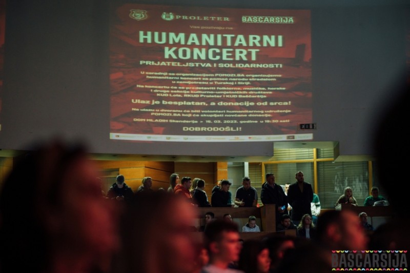 U organizaciji sarajevskih kulturno-umjetničkih društava: KUD Baščaršija, RKUD Proleter, KUD Lola i humanitarne organizacije POMOZI.BA u Sarajevu je održan humanitarni koncert za pomoć zemljotresom zahvaćenom području Turske i Sirije.