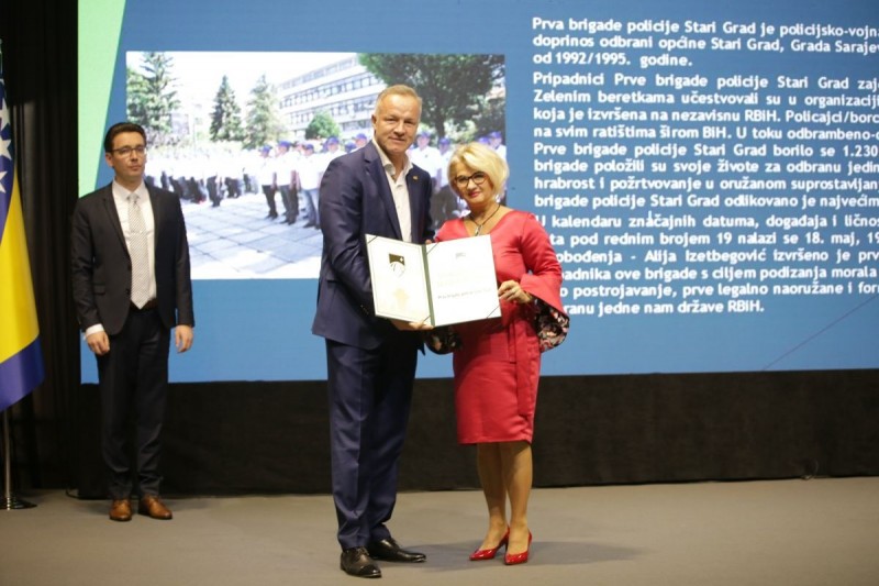 Za izuzetan humanitarni rad i pomoć najugroženijim kategorijama u Starom Gradu, Elviru Karaliću osnivaču udruženja Pomozi.ba uručena je Povelja sa grbom Općine Stari Grad, a isto priznanje dobili su i glumac sa internacionalnom karijerom Adnan Hasković i KUD Baščaršija.
