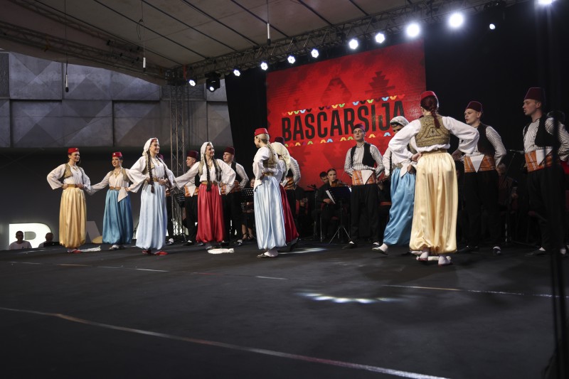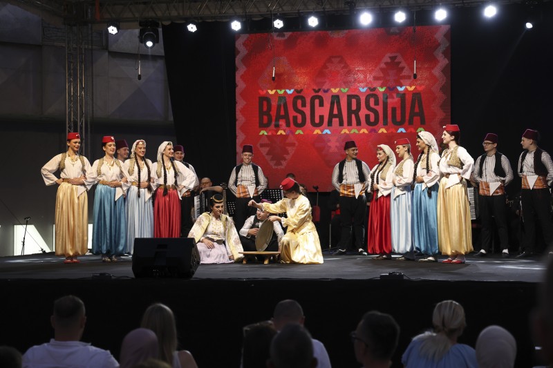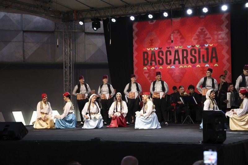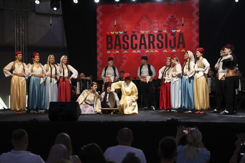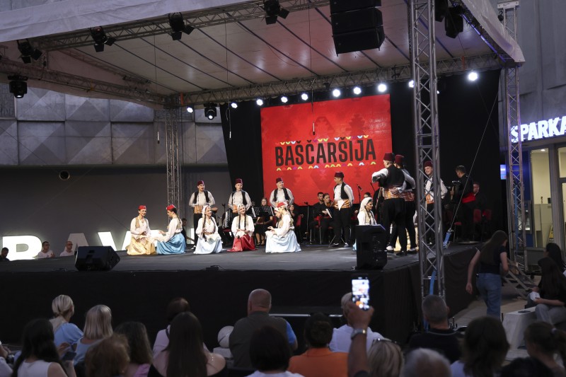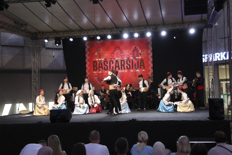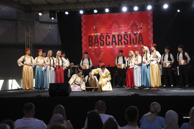 KUD Baščaršija, prepoznatljiv po autentičnom izrazu i vrhunskom izvođačkom kvalitetu, predstavio se izvedbama tradicionalnih narodnih igara iz različitih krajeva Bosne i Hercegovine. Bogate narodne nošnje, dinamične koreografije i precizna izvedba ostavili su snažan utisak na publiku, koja je svaku tačku ispratila gromoglasnim aplauzom.